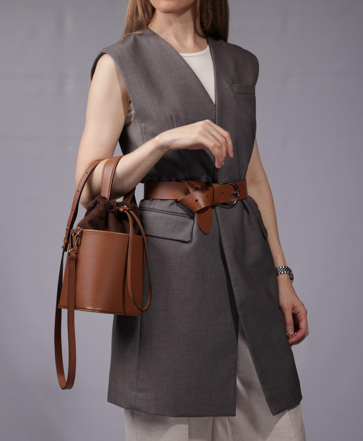 Очень оригинальная и стильная, трендовая модель, эргономичной формы. Материалы: Натуральная премиальная фактурная кожа производства Италия. Подкладка - Американский канвас. Доп.уплотнение - спец.материалы, кожкартон: дно и внешние стенки сумки. Фурнитура: Гиппоаллергенный сплав замак с тройным гальваническим покрытием с содержанием драгоценного металла(не стирается с годами) Вместительность: Предметы разных форм, подходит для деловых встреч. Функционал: Застежка - утяжка мешка. В комплекте:съёмный регулируемый ремень. Размер: 16*14